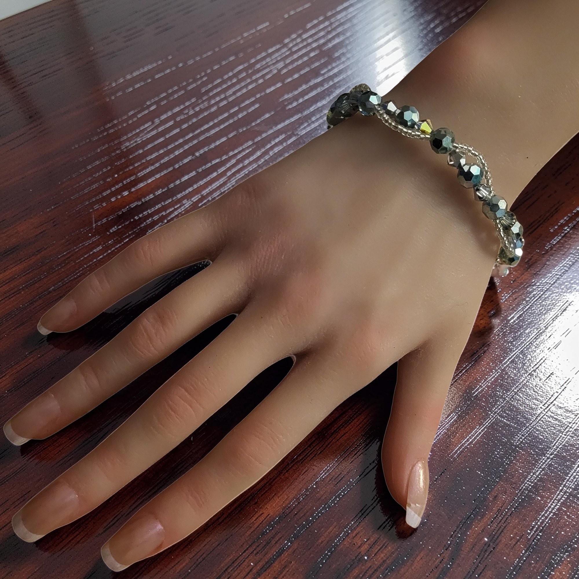 Simple but elegant handmade silver waved bracelet.